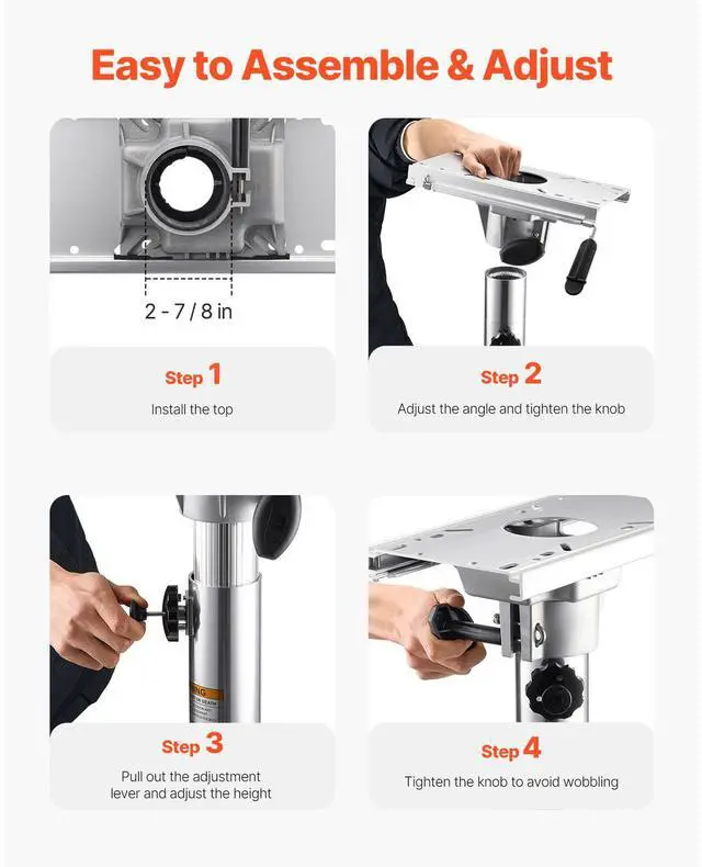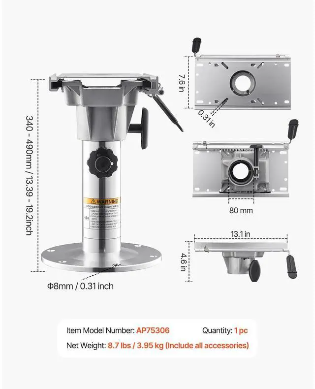 VEVOR Boat Seat Pedestal, Adjustable Height from 13.39 to 19.2 Inches, Aluminum Alloy Boat Chair Base with Slide, 5-inch Sliding Travel, Locking Design, Ideal for Fishing and Boating Enthusiasts