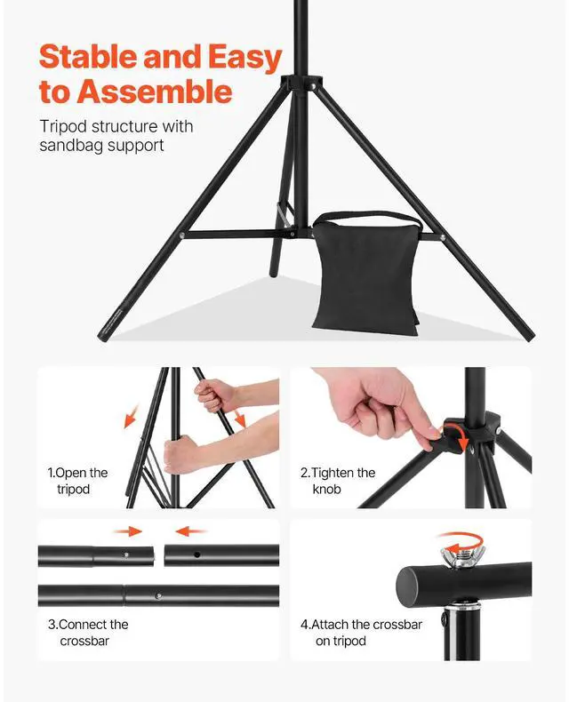 VEVOR Backdrop Stand, 7 x 10 ft Adjustable Photo Backdrop Stand Kit, Portable Background Backdrop Stand with 3 Crossbars, Heavy Duty Projector Screen Stand, for Wedding, Photo Video Studio & Party