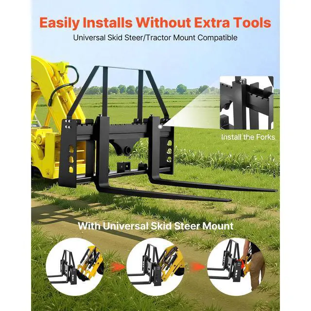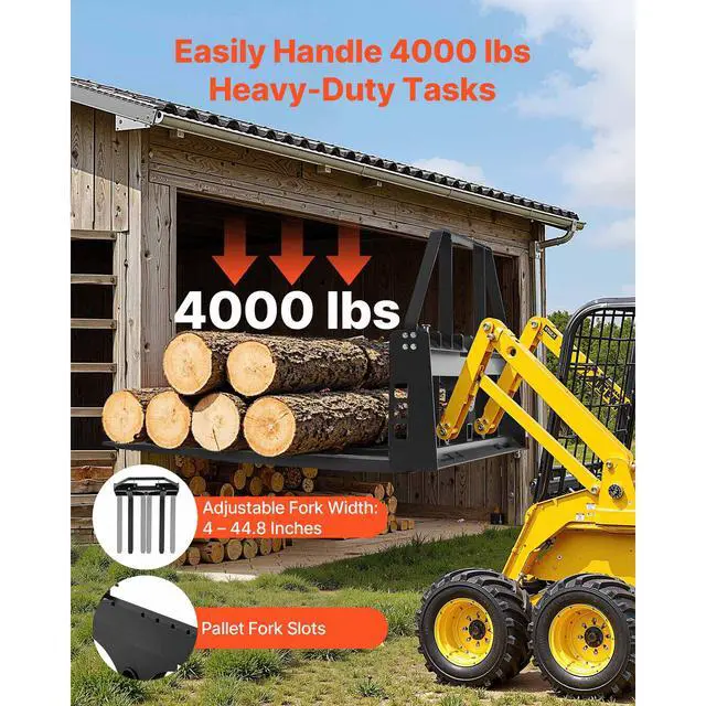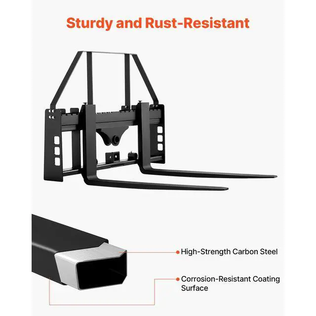 VEVOR Pallet Fork Frame Attachment with 48-inch Skid Steer Pallet Forks 4000 lbs