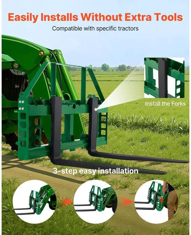 VEVOR Pallet Fork Frame Attachment with 42-inch Skid Steer Forks for JD Tractors