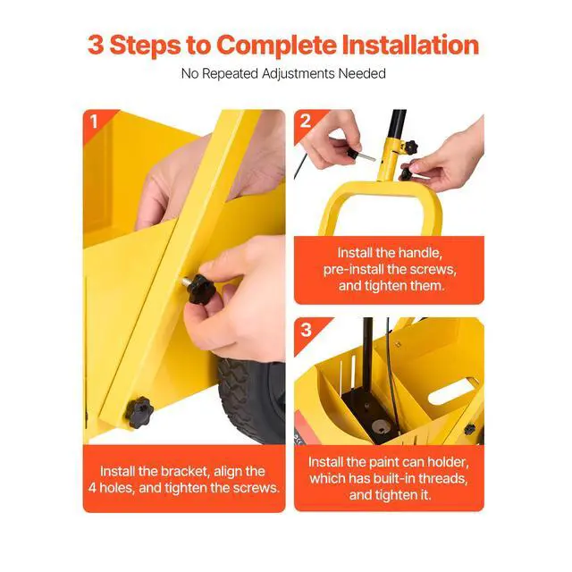 VEVOR Striping Line Marking Machine, 24 x 13 x 35.4 inch, 4-Wheel, Heavy Duty Striping Line Machine with 2-4 inch Adjustable Width, Make Clear Edge Line for Roads, Parking Lots, Sports Field, Yellow