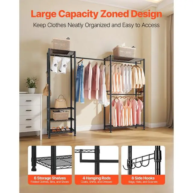 VEVOR Clothing Garment Rack, Heavy Duty Clothes Rack, Freestanding Clothes Racks with Steel Frame, 800 lbs Load Capacity Closet Wardrobe with Storage Shelves for Bedroom, Clothing Store, Hallway
