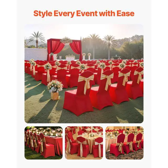 VEVOR 50 Pcs Red Chair Covers, Polyester Spandex Chair Cover, Stretch Slipcovers for Wedding Party Dining Banquet Flat-Front Chair Covers, Fits Chair Measures up to 20.08 x 17.72 x 37.4 inch
