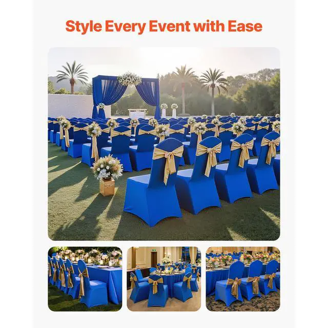 VEVOR 50 Pcs Royal Blue Chair Covers, Polyester Spandex Chair Cover, Stretch Slipcovers for Wedding Party Dining Banquet Flat-Front Chair Covers, Fits Chair Measures up to 20.08 x 17.72 x 37.4 inch