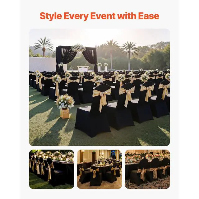 VEVOR 100 Pcs Black Chair Covers, Polyester Spandex Chair Cover, Stretch Slipcovers for Wedding Party Dining Banquet Flat-Front Chair Covers, Fits Chair Measures up to 20.08 x 17.72 x 37.4 inch