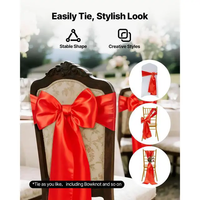 VEVOR Satin Chair Sashes Bows, 100PCS Chair Ribbon Ties Back Sash, 7 x 108 inch, Red Wedding Reception Decoration, for Wedding Ceremony Baby Shower Party Events Banquet Chair Cover Decoration