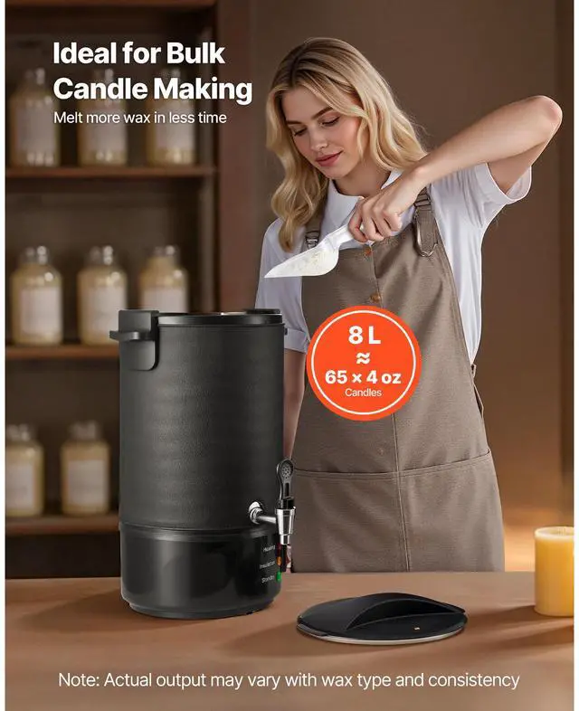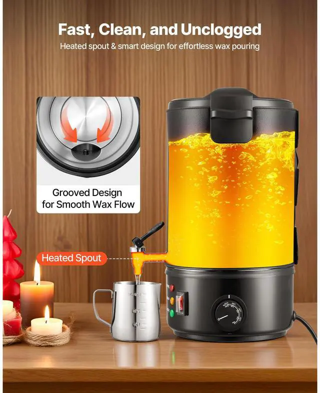 VEVOR Wax Melter for Candle Making, 8.5 Qts, Fast and Even Heating, with Easy Pour Spout and Temperature Control, Grooved Base for Non-Stick and Smooth Flow, Wax Melting Pot for Making Candles Soaps