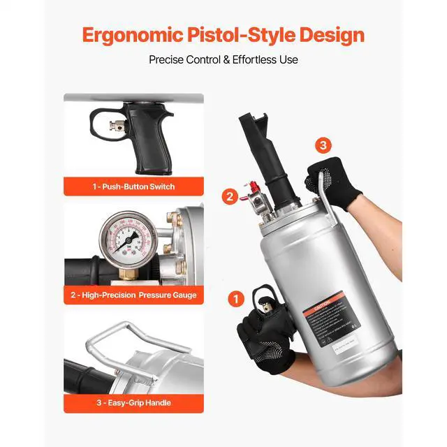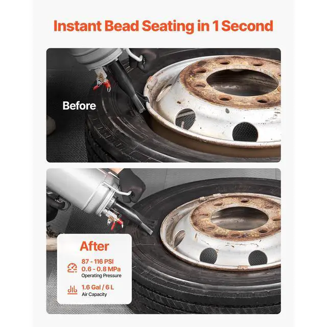 VEVOR Portable Tire Bead Seater, 1.6 Gal / 6 L Air Bead Blaster, Handheld Tire Inflator Tool, 87-116 PSI Operating Pressure, Trigger Seating Inflator for Car, Compact SUV, Light Truck, E-Bike, RV, ATV