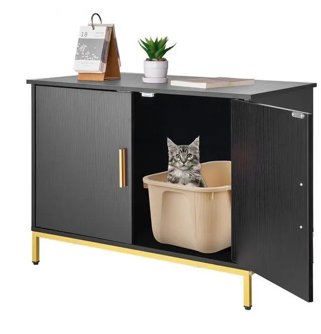 VEVOR Cat Litter Box Enclosure Furniture, 27.6 in Hidden Litter Box Cabinet with Metal Legs & Handle, Modern Style Cat Washroom House End Table, Fit Most of Litterbox, for Bedroom Living Room
