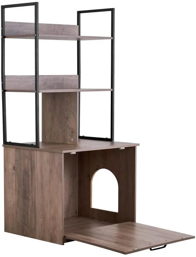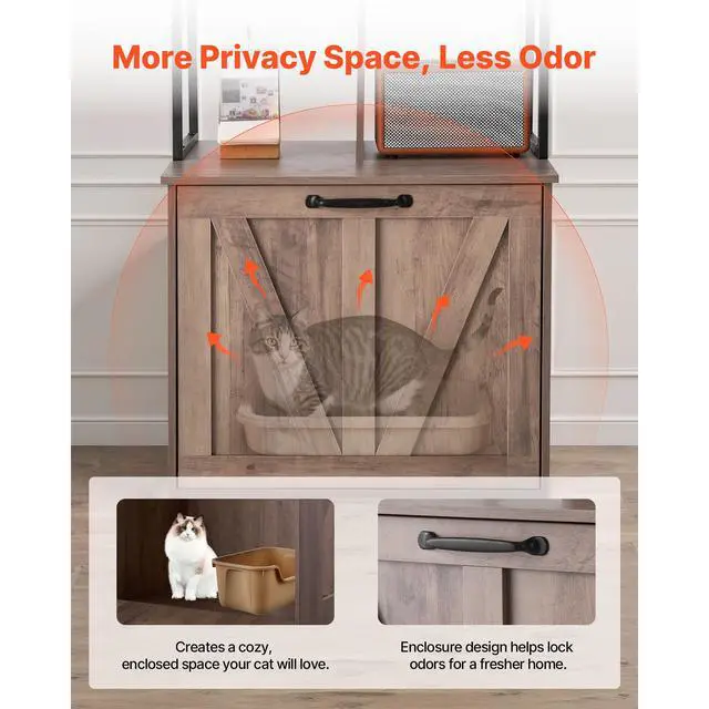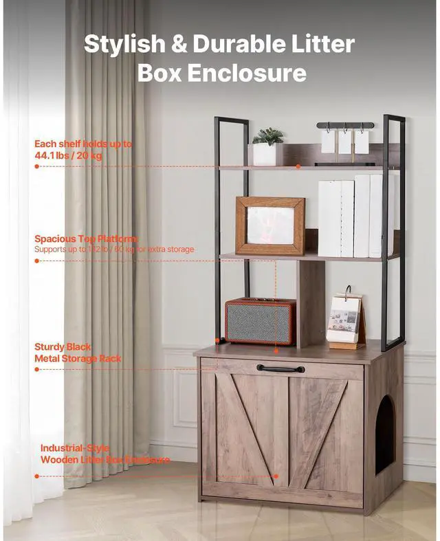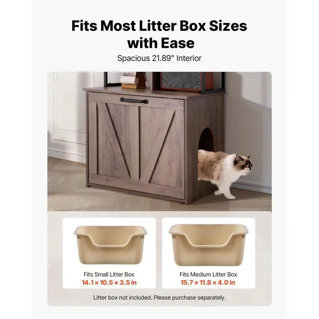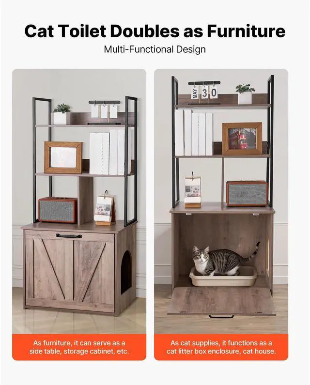 VEVOR Cat Litter Box Enclosure Furniture, 23.6 in Hidden Litter Box Cabinet with Storage Shelves, Modern Style, Waterproof Cat Washroom Side Table Cat House, Fit Most of Litterbox, for Living Room