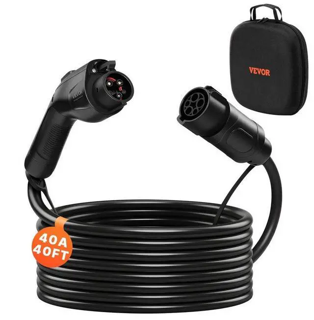 VEVOR EV Charger Extension Cable, 40Amp 40 ft J1772 Extension Cord Compatible with 120V-240V SAE J1772 Electric Vehicle Chargers, Level 1/Level 2 IP66 Heavy Duty Car Charging Cable with Carrying Bag