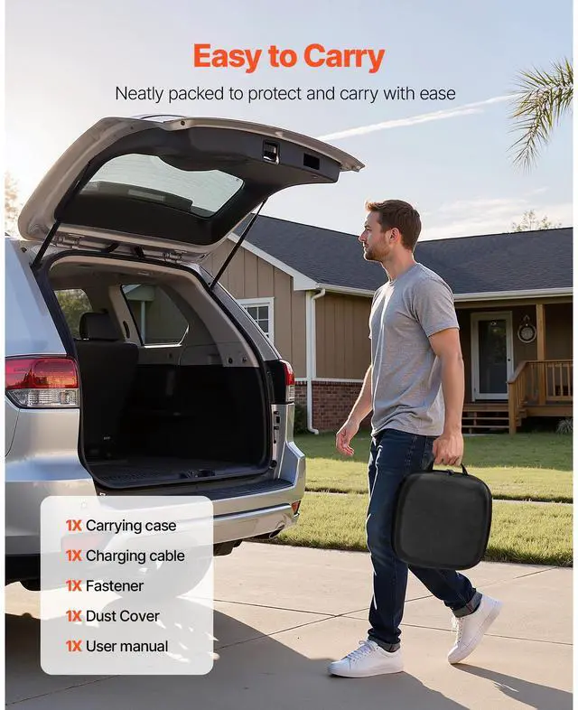 Protection Level: IP66,Operating Temperature: -22 to 122 (-30 to 50),Cable Specification: 2 x 9 AWG + 1 x 10 AWG + 1 x 22 AWG,Main Materials: ABS + PA66,Color: Black,Item Model Number: EVS03,Connector Type: SAE J1772,Input Voltage: AC 120V 60Hz/AC 240V 60Hz,Rated Current: 40A