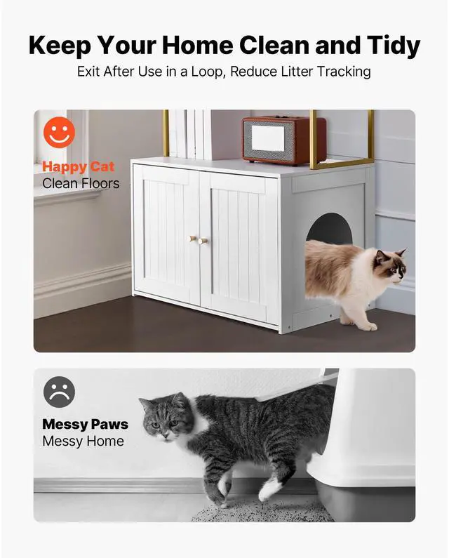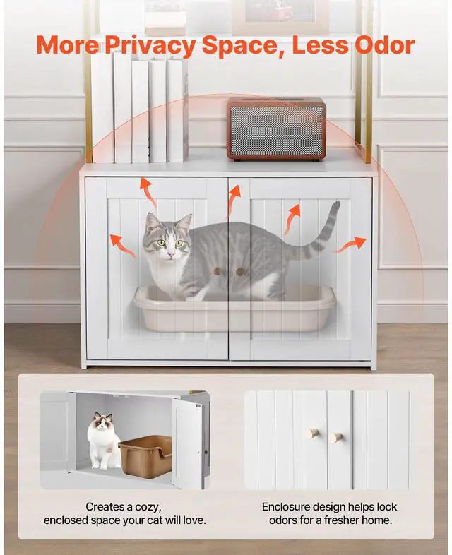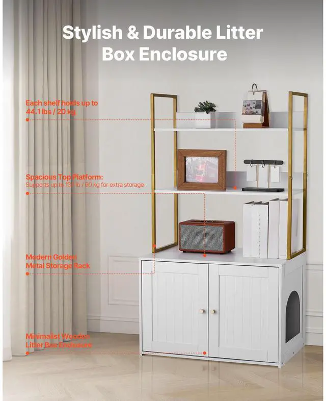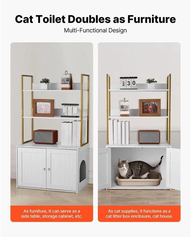 VEVOR Cat Litter Box Enclosure Furniture, 27.6 in Hidden Litter Box Cabinet with Metal Legs & 2-Tier Storage Shelves, Waterproof Cat Washroom Cat House, Fit Most of Litterbox, for Living Room