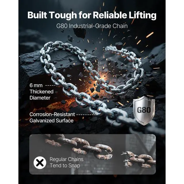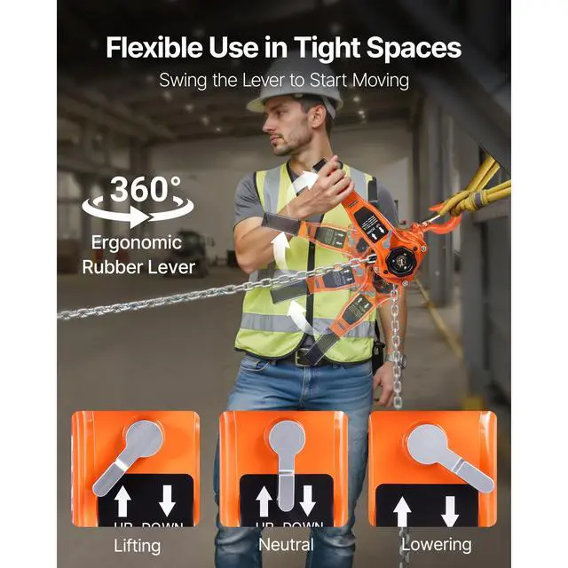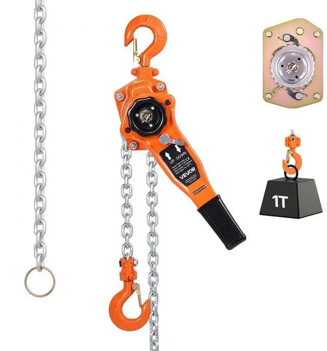 VEVOR Manual Lever Chain Hoist, 1T 2200LBS Capacity Heavy Duty Come Along, 10FT Lift G80 Alloy Steel Chain With Dual Pawl Mechanical Brake,360°Rotating Hooks, for Warehouse Construction Garage