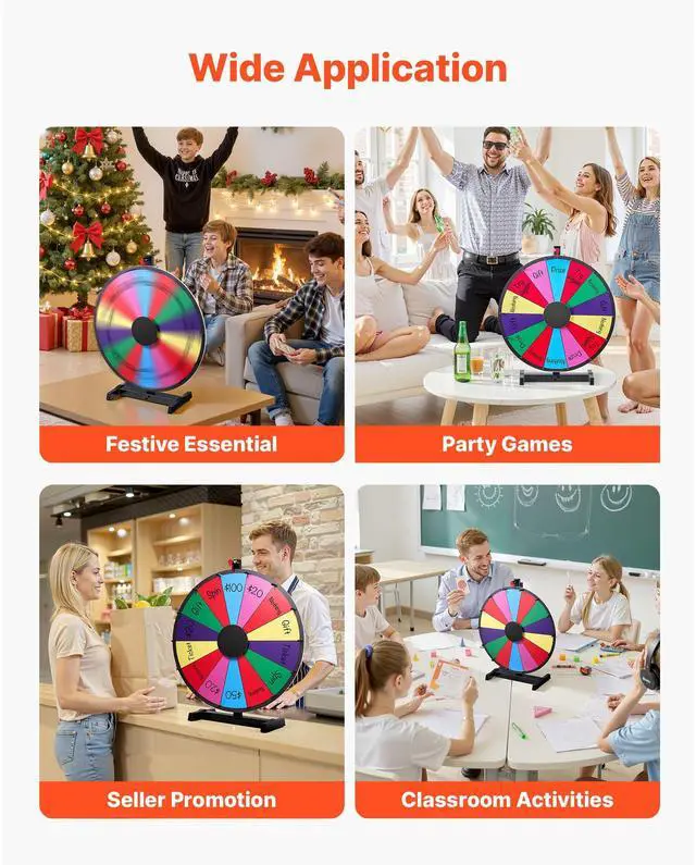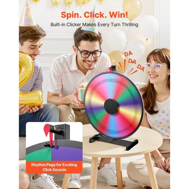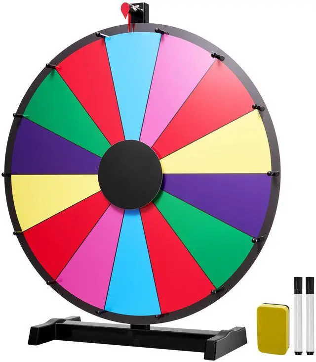 VEVOR 24 in Spinning Prize Wheel, 14 Slots Spinning Wheel with Stand, Tabletop Win Fortune Roulette with a Dry Erase and 2 Markers, 6 Colors, Easy Assembly, for Party Pub Trade Show Carnival Events