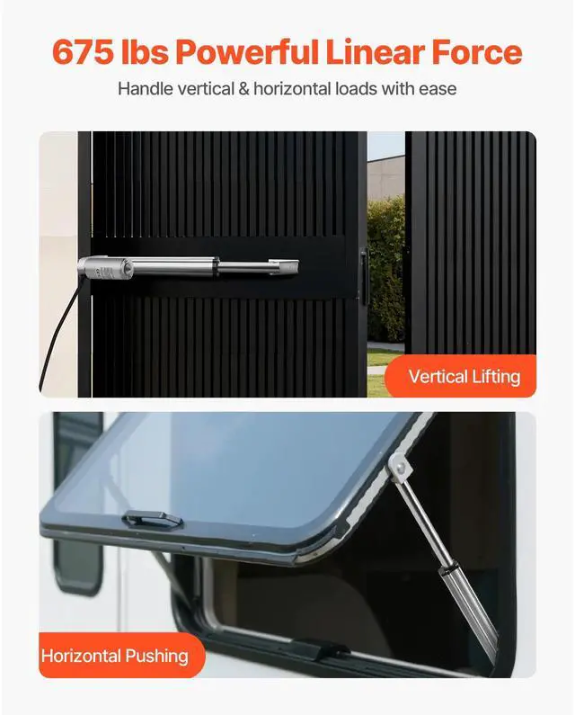 VEVOR 12V Linear Actuator, 8 Inch IP65 Waterproof Linear Actuator, 675lbs/3000N 0.2"/s Motion Actuators with Mounting Bracket for Outdoor Use
