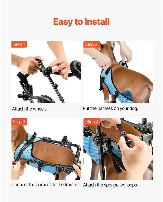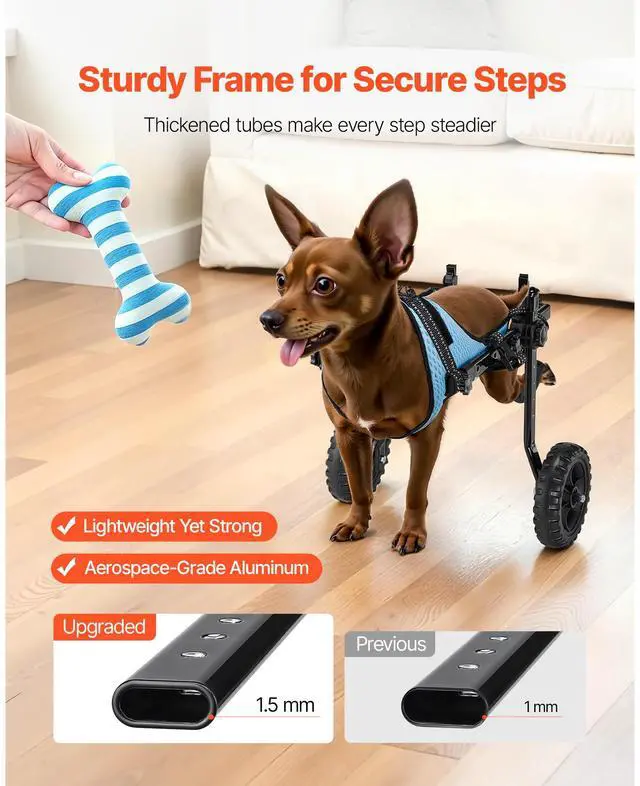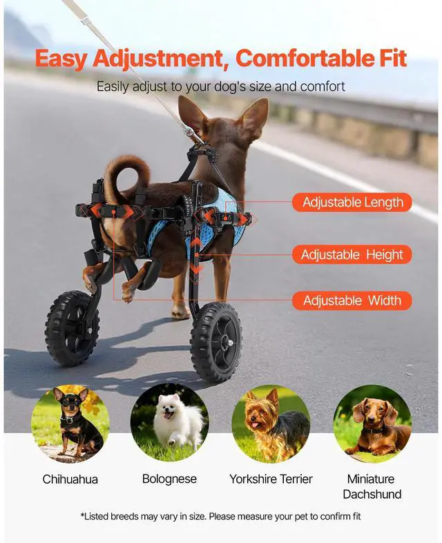 VEVOR Dog Wheelchair for Back Legs, Adjustable 2 Wheels Pet Wheelchair, Lightweight Dog Cart with Shock-Absorbing Wheels, Mobility Support Wheel Chair for Disabled Injured Dogs up to 22lbs , X-Small