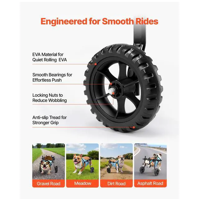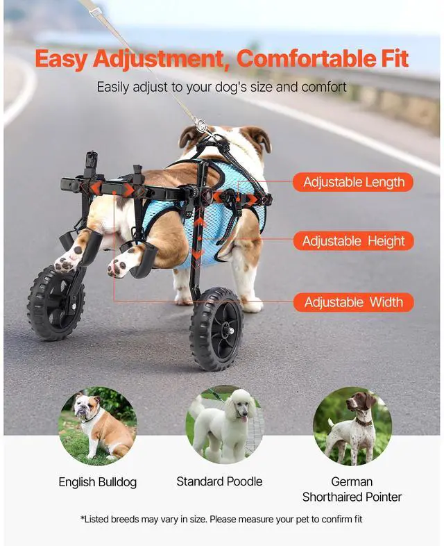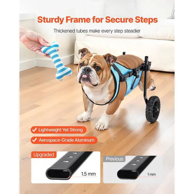 VEVOR Dog Wheelchair for Back Legs, Adjustable 2 Wheels Pet Wheelchair, Lightweight Dog Cart with Shock-Absorbing Wheels, Mobility Support Wheel Chair for Disabled Injured Dogs up to 33lbs, Medium