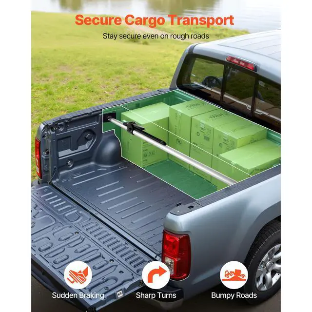 VEVOR Cargo Bar, Ratcheting Cargo Bar Adjustable from 59" to 73", Heavy-duty Steel Cargos Stabilizer with Non-Slip Foot Pads, Telescoping Load Lock Bars Stop Sliding for Pickup Truck