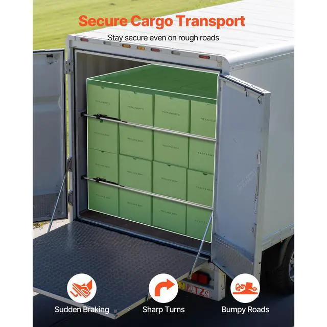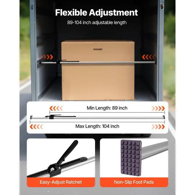 VEVOR Cargo Bar, Ratcheting Cargo Bar Adjustable from 89" to 104", Heavy-duty Steel Cargos Stabilizer with Non-Slip Foot Pads, Truck Bed Load Lock Bars for Box Trucks, Semi-Trailers, Trailers (2PCS)