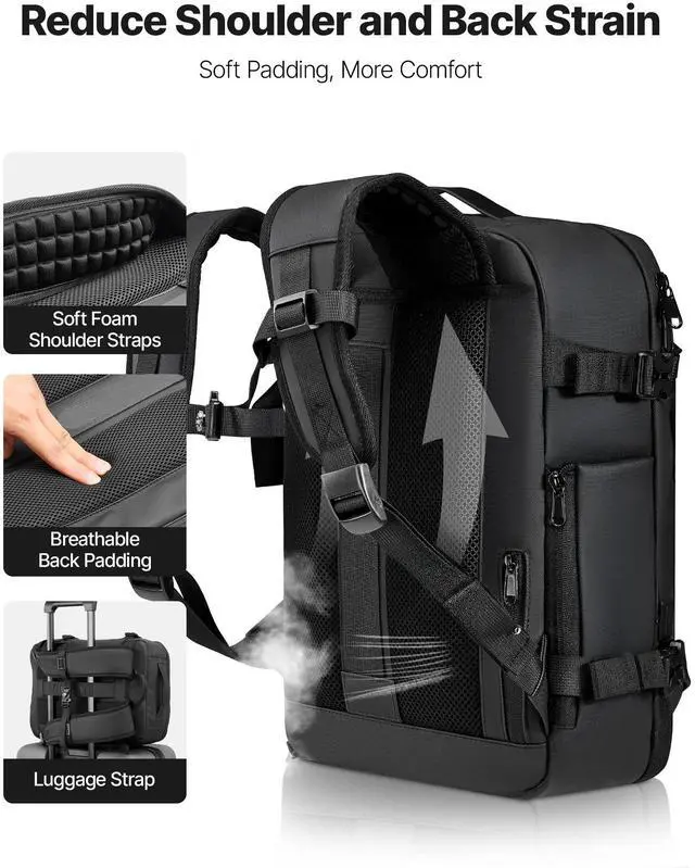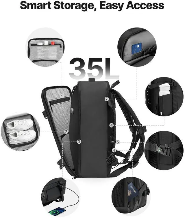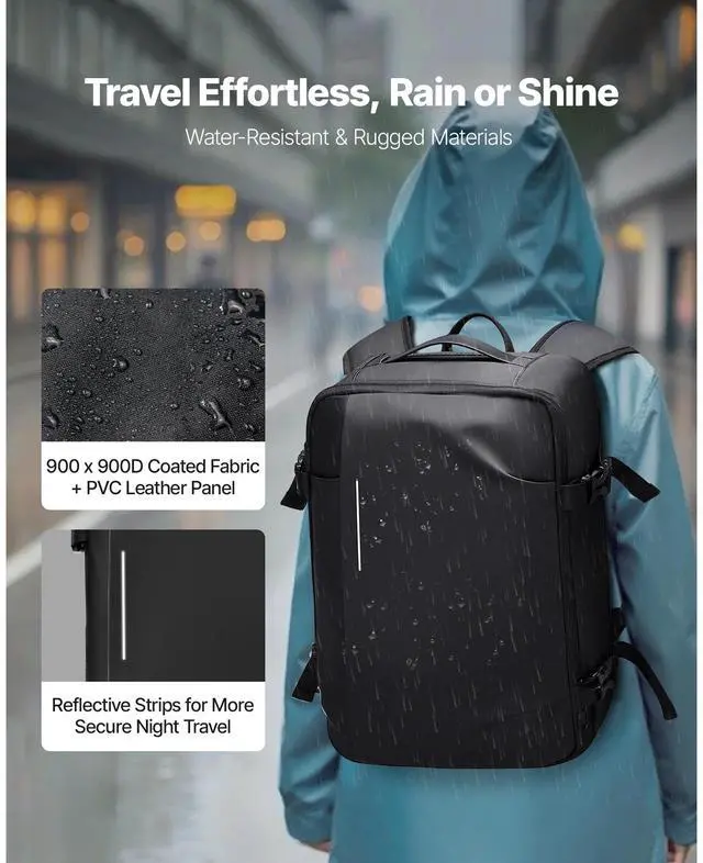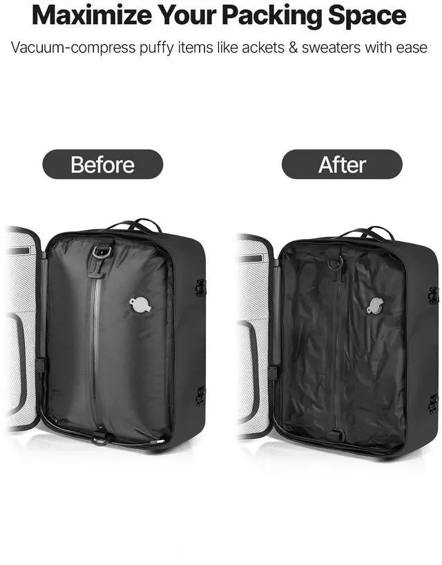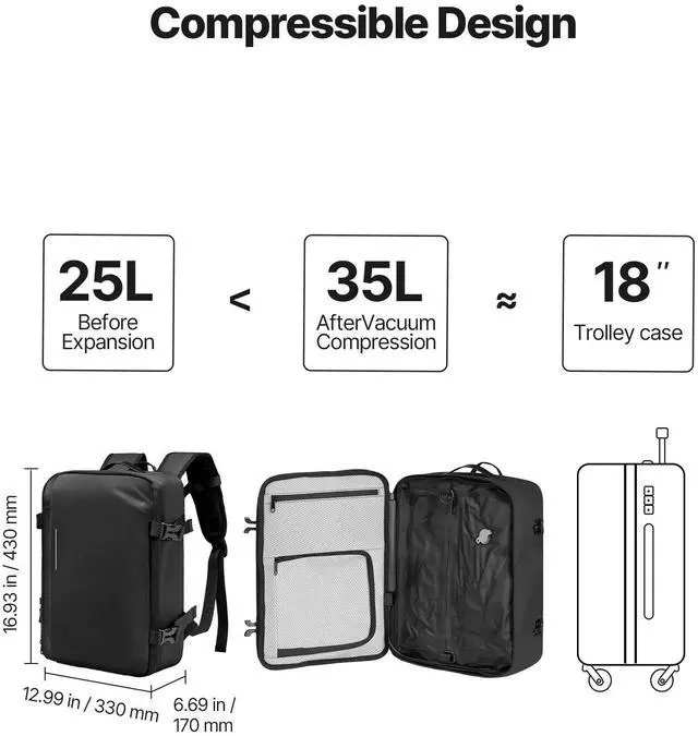 VEVOR Vacuum Travel Backpack, 35L, Vacuum Seal Compression Travel Backpack with Air Pump, Multiple Pockets & Compartments, Water-Resistant Carry-On Suitcase Luggage, Casual Personal Item Bag, Black