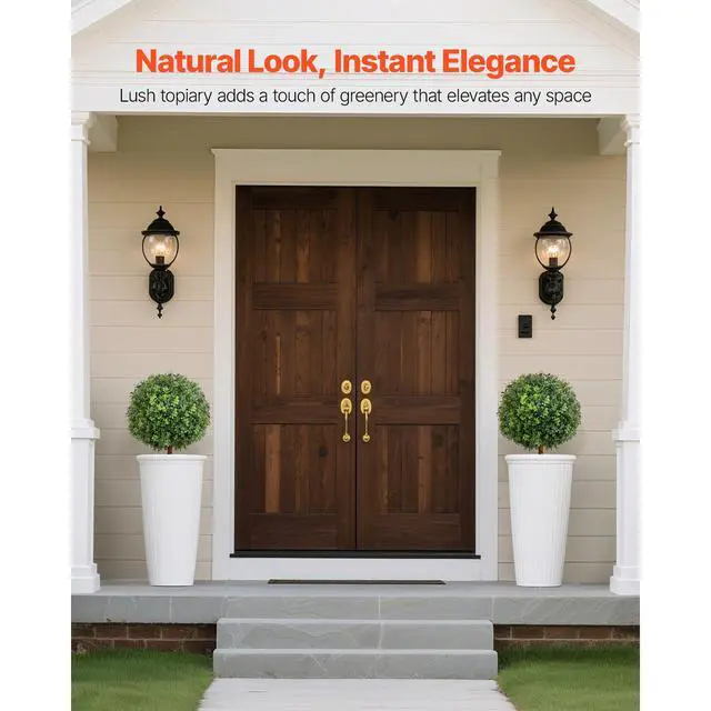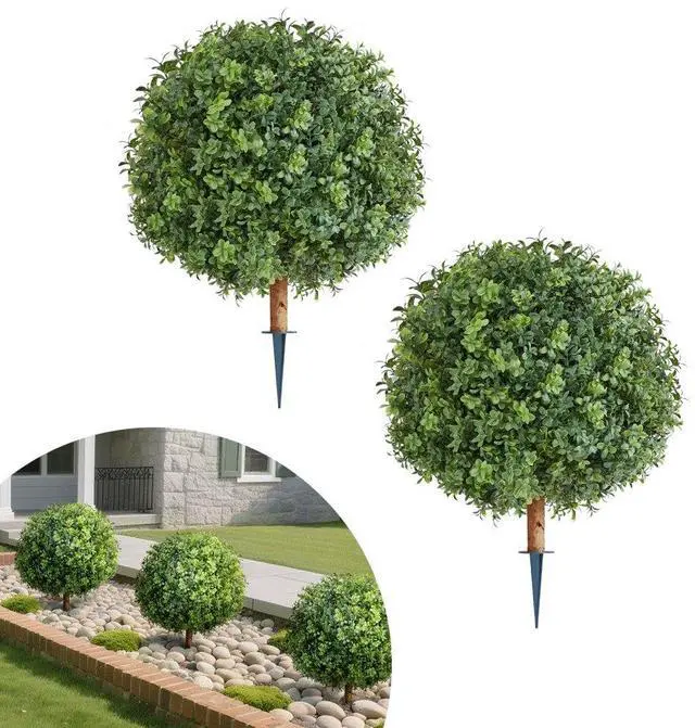 VEVOR Artificial Topiary Boxwood Trees with Ground Spike, 22 inch 2 Set Faux Shrubs & Bushes Potted Plants, Fake Silk Tree Look Real for Decor Front Porch Outdoor Indoor Patio Garden Balcony Backyard