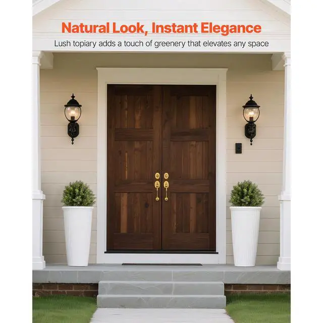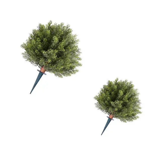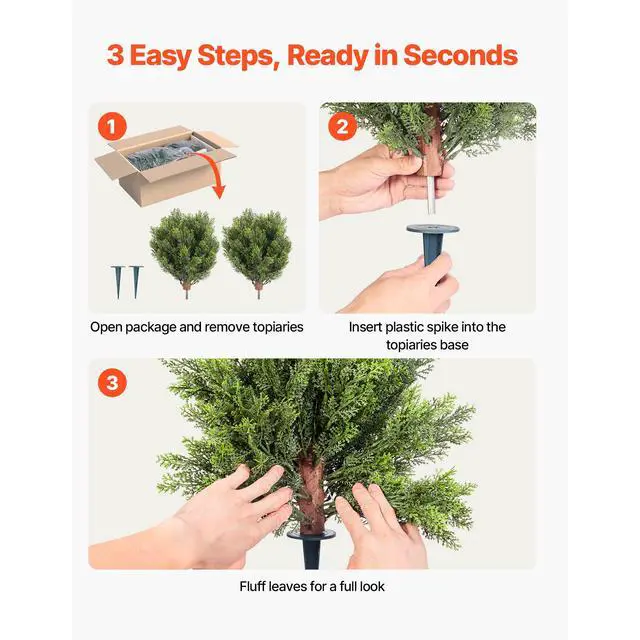 VEVOR Artificial Topiary Cypress Trees with Ground Spike, 16 inch 2 Set Faux Shrubs & Bushes Potted Plants, Fake Silk Tree Look Real for Decor Front Porch Outdoor Indoor Patio Garden Balcony Backyard