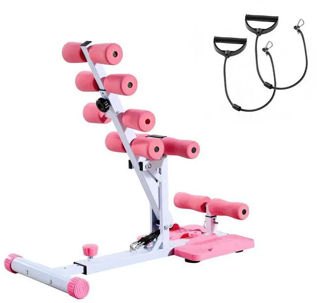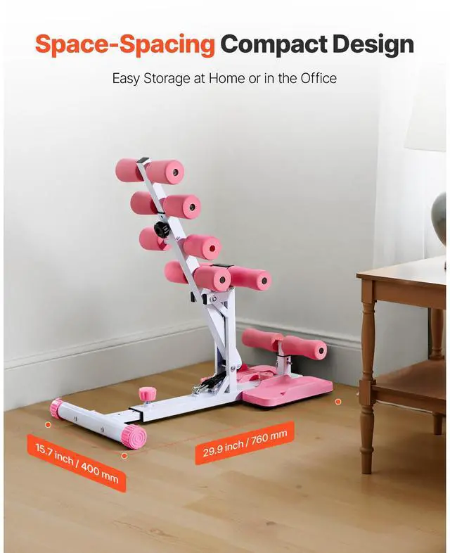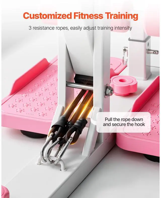 VEVOR Deep Squat Machine, Adjustable Glutes Trainer Machine with 3 High-Strength Resistance Bands, Folding Core Leg & Glutes Exercise Trainer, Push Up Workout Equipment at Home Gym, Pink + White