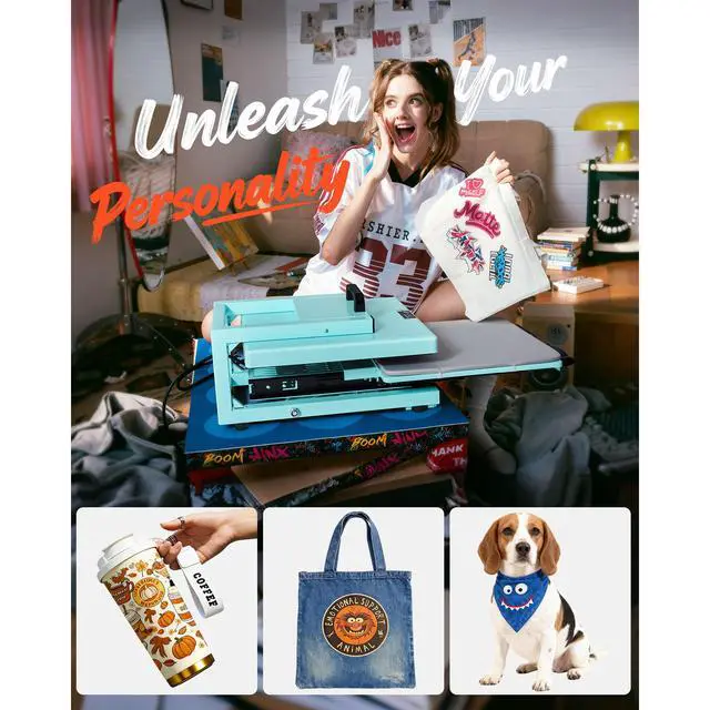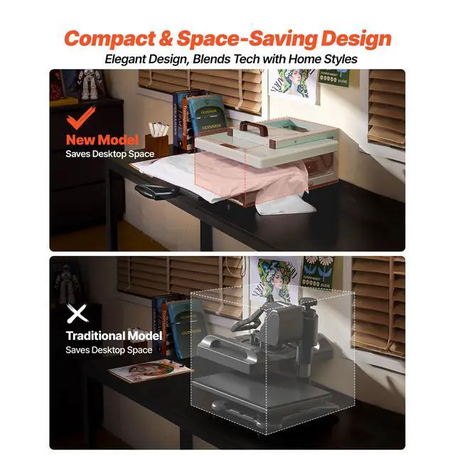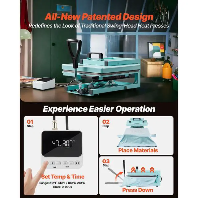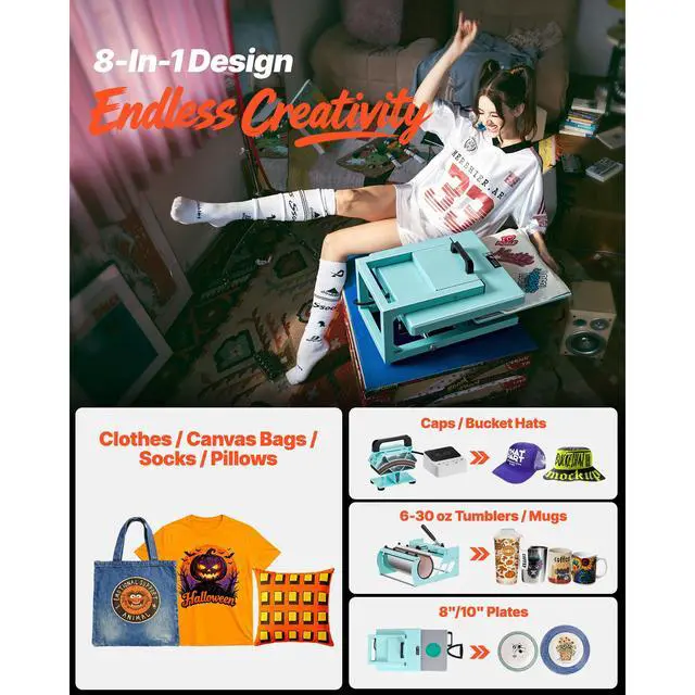 VEVOR Hybrid Heat Press, 15 x 15 inch, 8-in-1 Multifunction, Heat Up Fast and Even, All-New Patented Design, Easy to Control, Sublimation Press Machine for T-shirts/Tumblers/Caps/Plates, Light Green