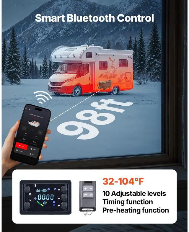 VEVOR Diesel Heater, 8KW, DC 12V/24V, All in One Portable Diesel Air Heater with Bluetooth APP Control, Remote Control and LCD Screen, Trolley Design, 1.3 Gal Fuel Tank for Trucks, Vans, RVs, Campers