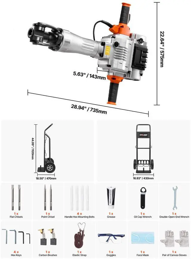 Bare Tool Weight (without chisels): 52.5 lbs / 23.8 kg