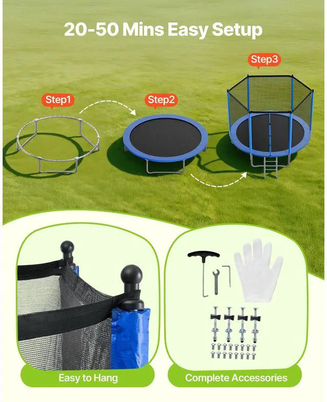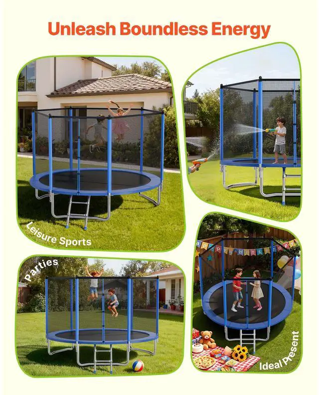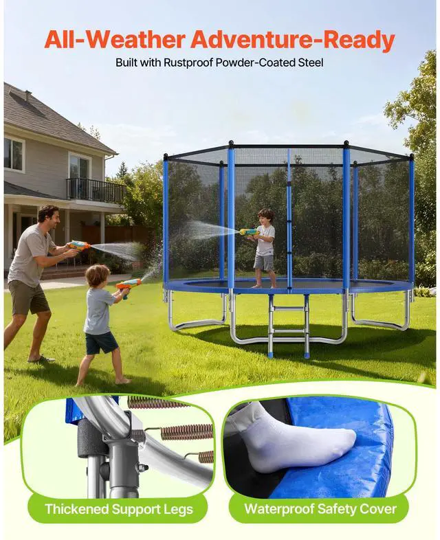 VEVOR Outdoor Trampoline, 10FT Round Recreational Trampoline with Enclosure Net, ASTM Approved, Heavy Duty Trampolines, Max 330 lbs Weight Capacity, Anti-Rust Backyard Trampolines for Kids & Adults