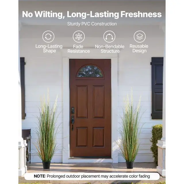 VEVOR Artificial Grass Plant, 2 Pack 59 inch Faux Reed Flower Grass in Pot, Premium PVC Fake Greenery Shrubs Plant for Indoor Outdoor House Home Garden Office Room Décor, Housewarming, Green