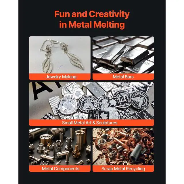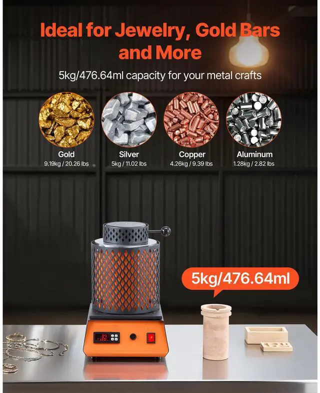 VEVOR Electric Melting Furnace, 1500W Electric Metal Smelter Foundry, 2102/1150 Metal Smelting Machine with 5kg Ceramic Crucible, Gold Smelting Kit for Jewelry Making, Metal Bars, Metal Components