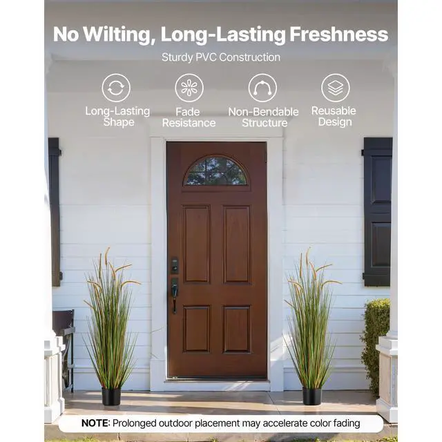 VEVOR Artificial Grass Plant, 2 Pack 47 inch Horsetail Reed Grass in Pot, Premium PVC Faux Fake Greenery Shrubs Plant for Indoor Outdoor House Home Garden Office Room Décor, Housewarming, Green