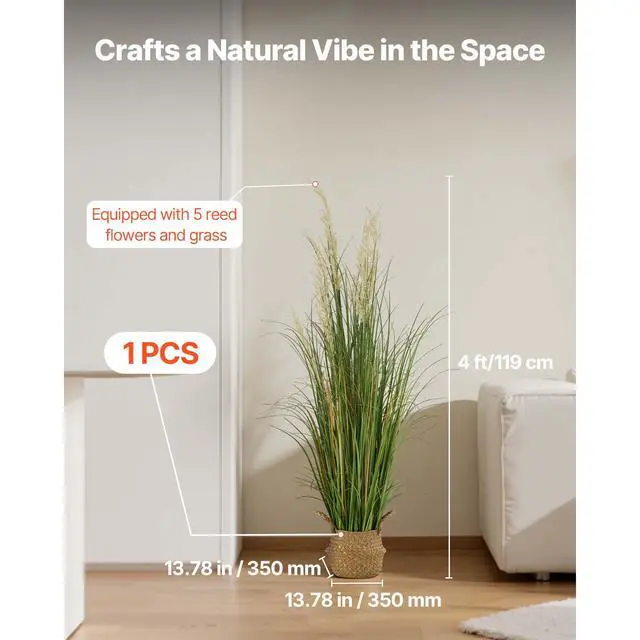 VEVOR Artificial Grass Plant, 47 inch Reed Flower Grass in Pot, Premium PVC Faux Fake Greenery Shrubs Plant for Indoor Outdoor House Home Garden Office Room Décor, Housewarming, 1 Pack Green