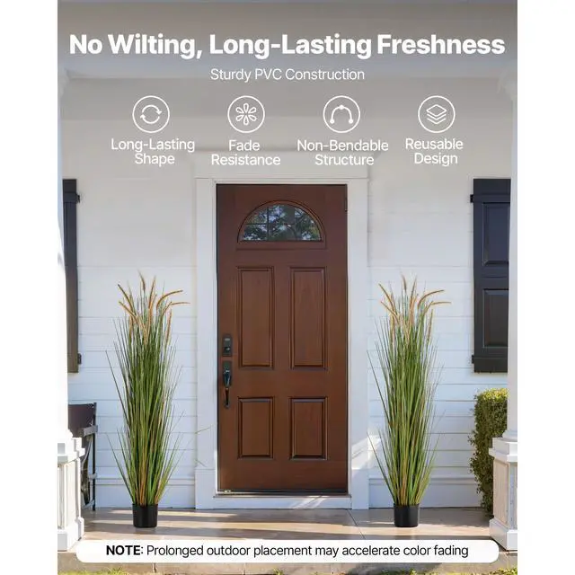 VEVOR Artificial Grass Plant, 2 Pack 59 inch Horsetail Reed Grass in Pot, Premium PVC Faux Fake Greenery Shrubs Plant for Indoor Outdoor House Home Garden Office Room Décor, Housewarming, Green