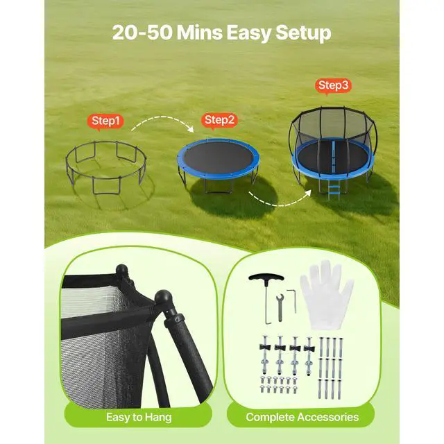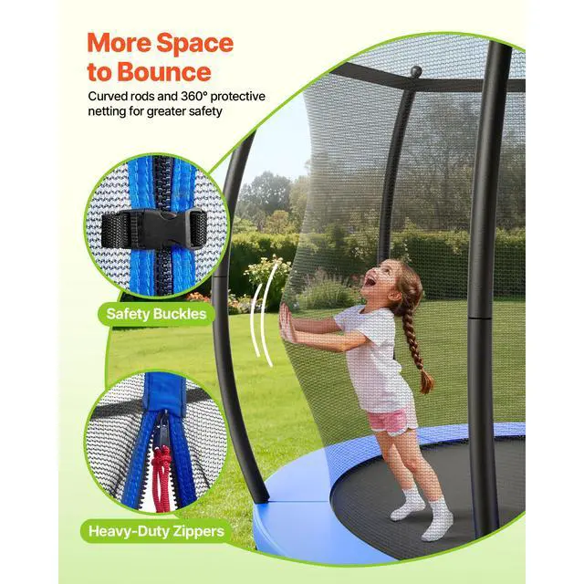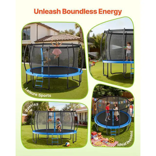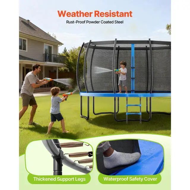 VEVOR Outdoor Trampoline, 16FT Recreational Trampoline, ASTM Approved Trampolines with Enclosure Net & Thickened Pad, Max 475 lbs Weight Capacity, Anti-Rust Backyard Trampolines for Kids & Adults