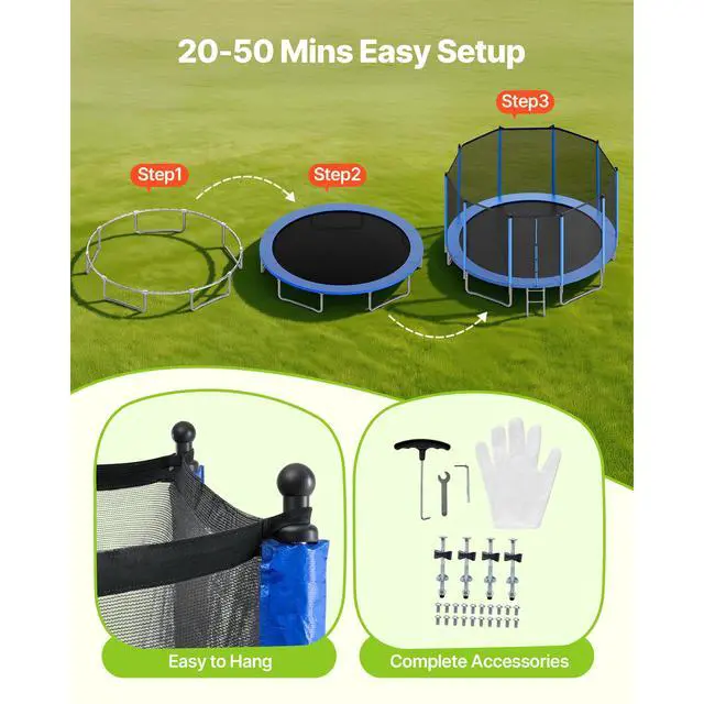VEVOR Outdoor Trampoline, 15FT Round Recreational Trampoline with Enclosure Net, ASTM Approved, Heavy Duty Trampolines, Max 470 lbs Weight Capacity, Anti-Rust Backyard Trampolines for Kids & Adults