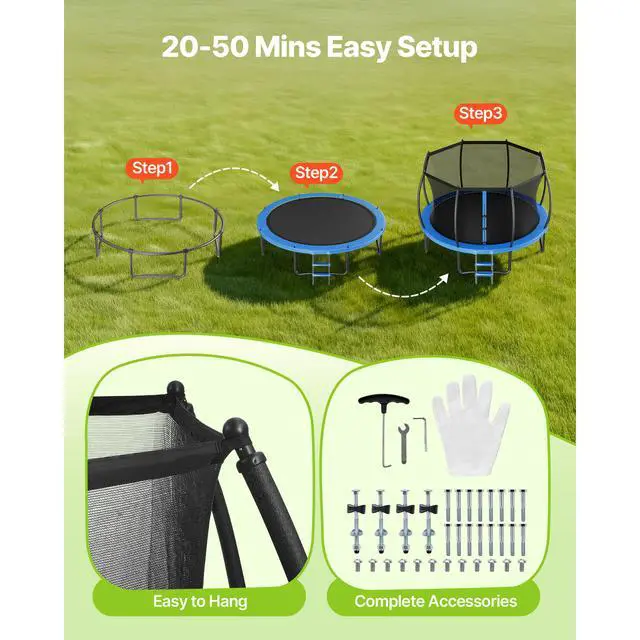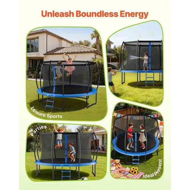 VEVOR Outdoor Trampoline, 14FT Recreational Trampoline, ASTM Approved Trampolines with Enclosure Net & Thickened Pad, Max 450 lbs Weight Capacity, Anti-Rust Backyard Trampolines for Kids & Adults