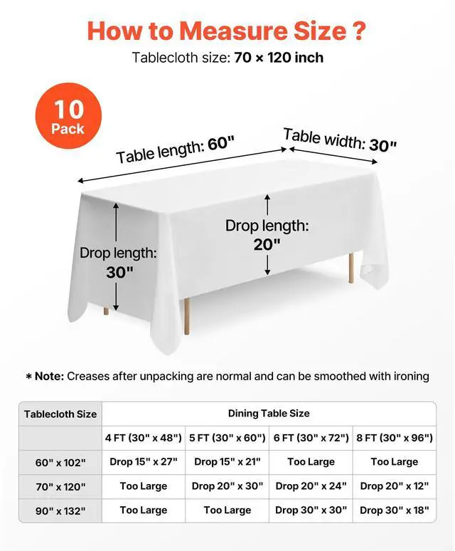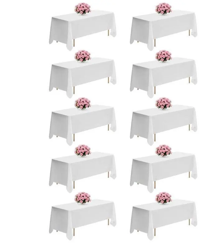 VEVOR White Tablecloths for Rectangle Tables, 10 Pack, 70 x 120 Inches, Reusable and Machine Washable Table Clothes, Wrinkle-Resistant Polyester Fabric Table Covers for Wedding, Party, Banquet