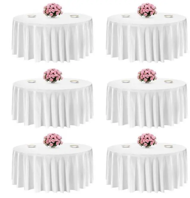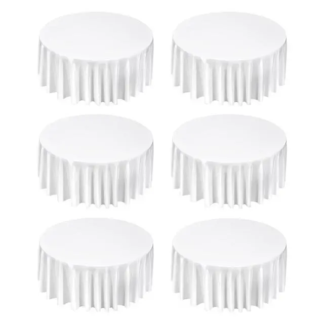 VEVOR White Round Tablecloths 6 Pack, 132 Inches in Diameter, Stain- & Wrinkle- Resistant, Machine Washable Table Clothes, Polyester Fabric Table Covers for Wedding, Party, Banquet, Formal Events