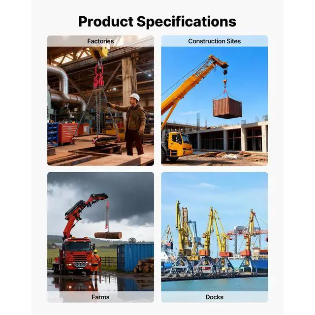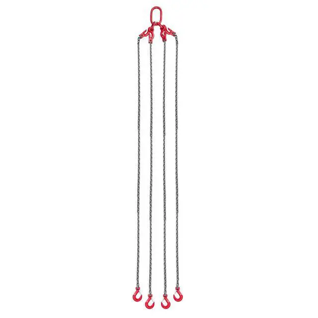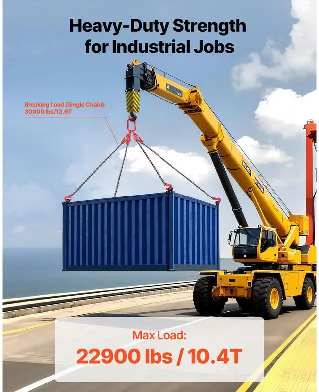 Max. Working Load (4-Leg Sling): 22900 lbs (10.4T),Item Model Number: 10x3M-4,Chain Grade: G80,Single Chain Breaking Load: 30,000 lbs / 13.6 t,Product Dimensions: 136 x 16 x 2 in/3450 x 410 x 50 mm,Chain Length: 10 ft / 300 cm,Net Weight: 80.25 lbs/36.4 kg,Main Material: Carbon Steel,Chain Diameter: 10 mm (3/8 in)