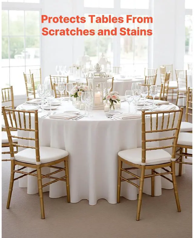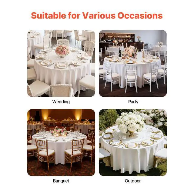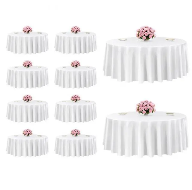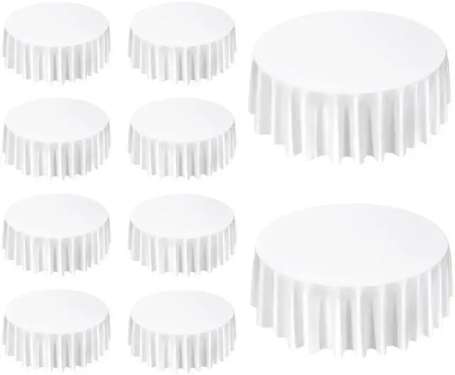VEVOR White Round Tablecloths 10 Pack, 120 Inches in Diameter, Stain- & Wrinkle- Resistant, Machine Washable Table Clothes, Polyester Fabric Table Covers for Wedding, Party, Banquet, Formal Events
