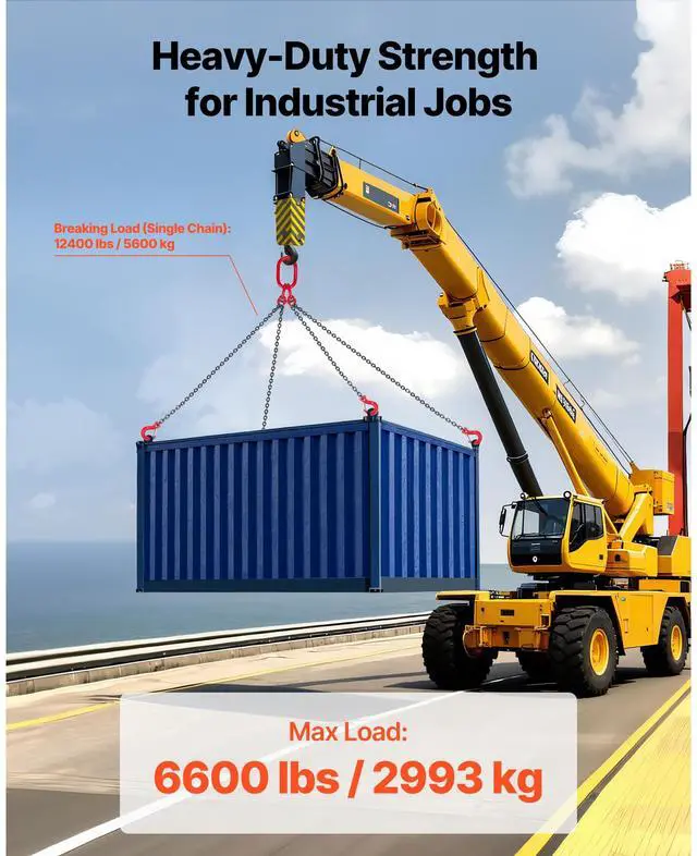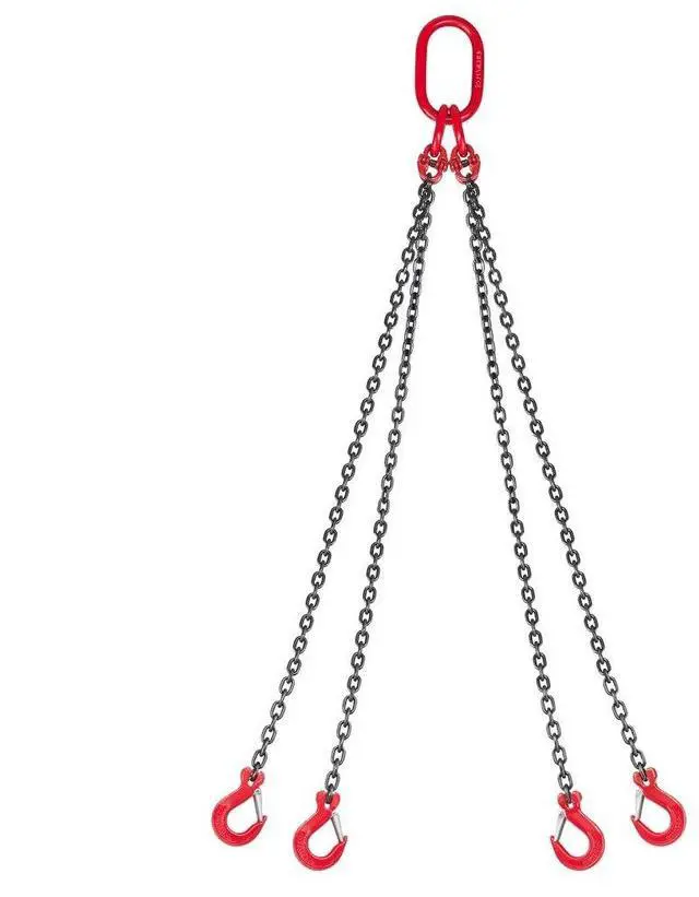 Max. Working Load (4-Leg Sling): 6600 lbs (2993 kg),Item Model Number: 6x1.5M-4,Chain Grade: G80,Single Chain Breaking Load: 12400 lbs / 5600 kg,Product Dimensions: 70 x 11.6 x 2 in/1780 x 295 x 50 mm,Chain Length: 5 ft / 150 cm,Net Weight: 17 lbs/7.7 kg,Main Material: Carbon Steel,Chain Diameter: 6.3 mm (1/4 in)