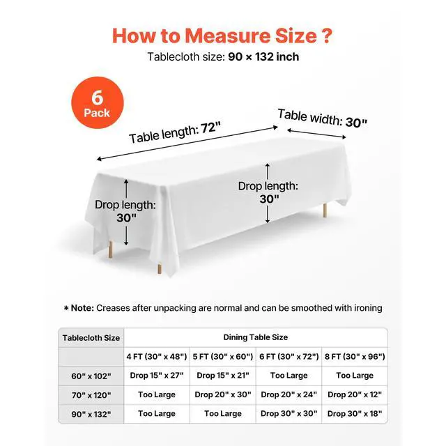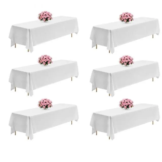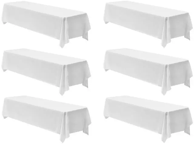 VEVOR White Tablecloths for Rectangle Tables, 6 Pack, 90 x 132 Inches, Reusable and Machine Washable Table Clothes, Wrinkle-Resistant Polyester Fabric Table Covers for Wedding, Party, Banquet