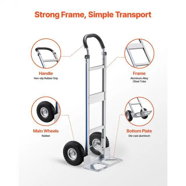 VEVOR Hand Truck, 500 lbs Load Capacity, Heavy-Duty Hand Truck Dolly with Non-Slip Wheels & Handle, Aluminum Alloy Portable Trolley Dolly with Tie-down Strap for Moving Home, Office, Warehouse