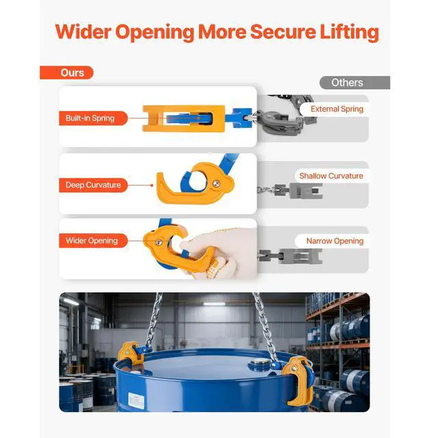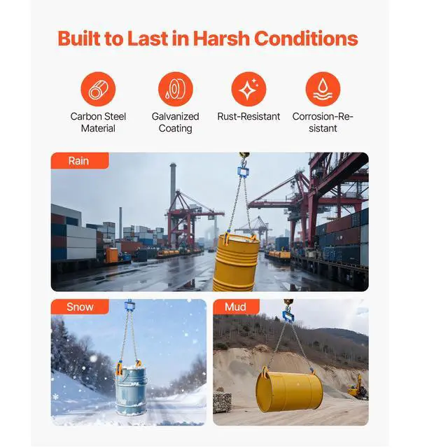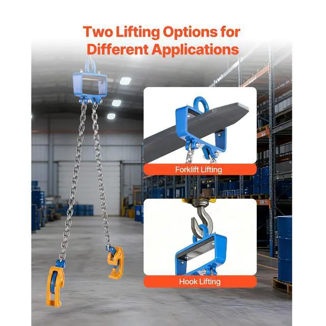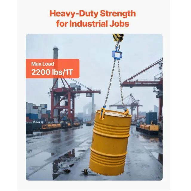 VEVOR Chain Drum Lifter, G80 Drum Lifting Chain Sling with Security Hook, 2200LBS Capacity, Drums Handling Equipment Fits for Crane Forklift, Carbon Steel Barrel Lifter for Plastic & Metal Drums