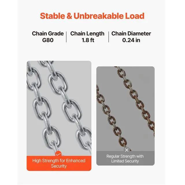Max. Working Load (2-Leg Sling): 2200 lbs (1T),Item Model Number: 6x0.5M,Chain Grade: G80,Single Chain Breaking Load: 12700 lbs (5800 kg),Product Dimensions: 30 x 7 x 1.4 in/755 x 175 x 35 mm,Chain Length: 1.8 ft / 54 cm,Net Weight: 8.16 lbs/3.7 kg,Main Material: Carbon Steel,Chain Diameter: 6 mm (0.24 in)