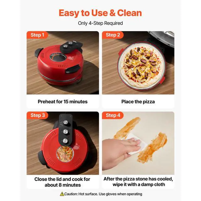 VEVOR Pizza Oven, 14 in Electric Pizza Maker, 1600W Electric Pizzas Cooker with Cordierite Stone, 5-Mode Temperature Control, Viewing Window for Precise Cooking, Heats up to 698 F, for Home Kitchen